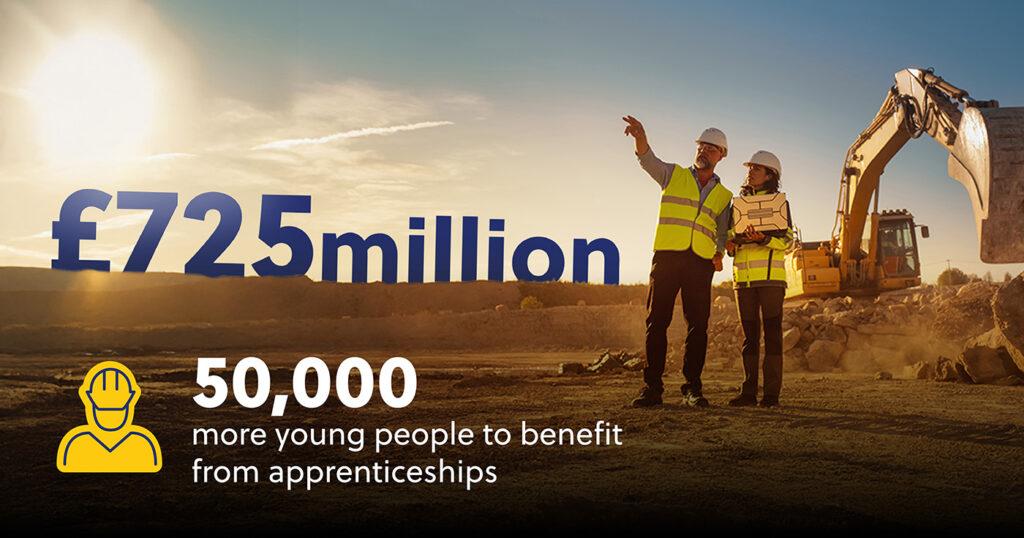 - A major £725 million investment has been announced to deliver more apprenticeships for young people and help match skills training with local job opportunities.